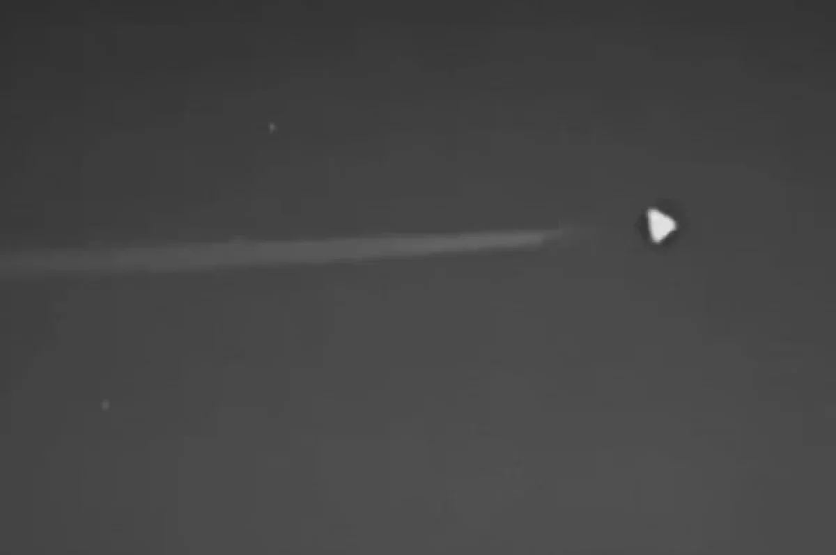 В социальных сетях появилось видео, на котором запечатлен объект треугольной формы, оставляющий за собой инверсионный след. Отмечается, что съемка была выполнена с помощью тепловизионной камеры.
