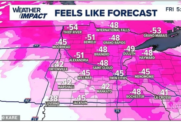 Метеоролог Макс Велосити, чьё предупреждение стало вирусным в соцсетях, указал на штаты, находящиеся в зоне риска: Миннесота, Мичиган, Висконсин, обе Дакоты, а также северные районы Айовы и Иллинойса. В эти выходные температура здесь может опуститься до -29 градусов по Цельсию (-20°F) и ниже.