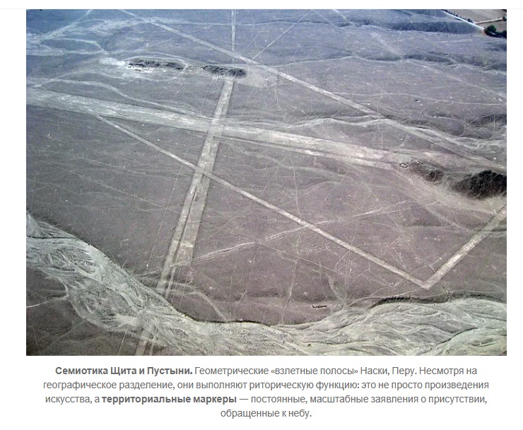 Примерно в то же время вдоль реки Ориноко были задокументированы гигантские петроглифы — изображения змей длиной более 40 метров. С семиотической точки зрения, такие масштабные изображения, видимые лишь с высоты, функционируют как территориальные маркеры, перформативные высказывания, запрещающие знаки, высеченные в породе континента.