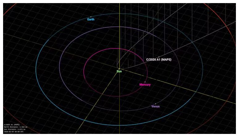 Шестого февраля 2026 года стало известно об обнаружении новой кометы, которая привлекла внимание наблюдателей за небом. Объект, обозначенный как C/2026 A1 (MAPS), был зафиксирован 13 января группой из четырёх астрономов-любителей с помощью дистанционно управляемого телескопа в пустыне Атакама. Предварительный анализ орбиты показал, что комета принадлежит к группе околосолнечных комет Крейца. Это семейство небесных тел известно появлением ряда исключительно ярких комет в истории.