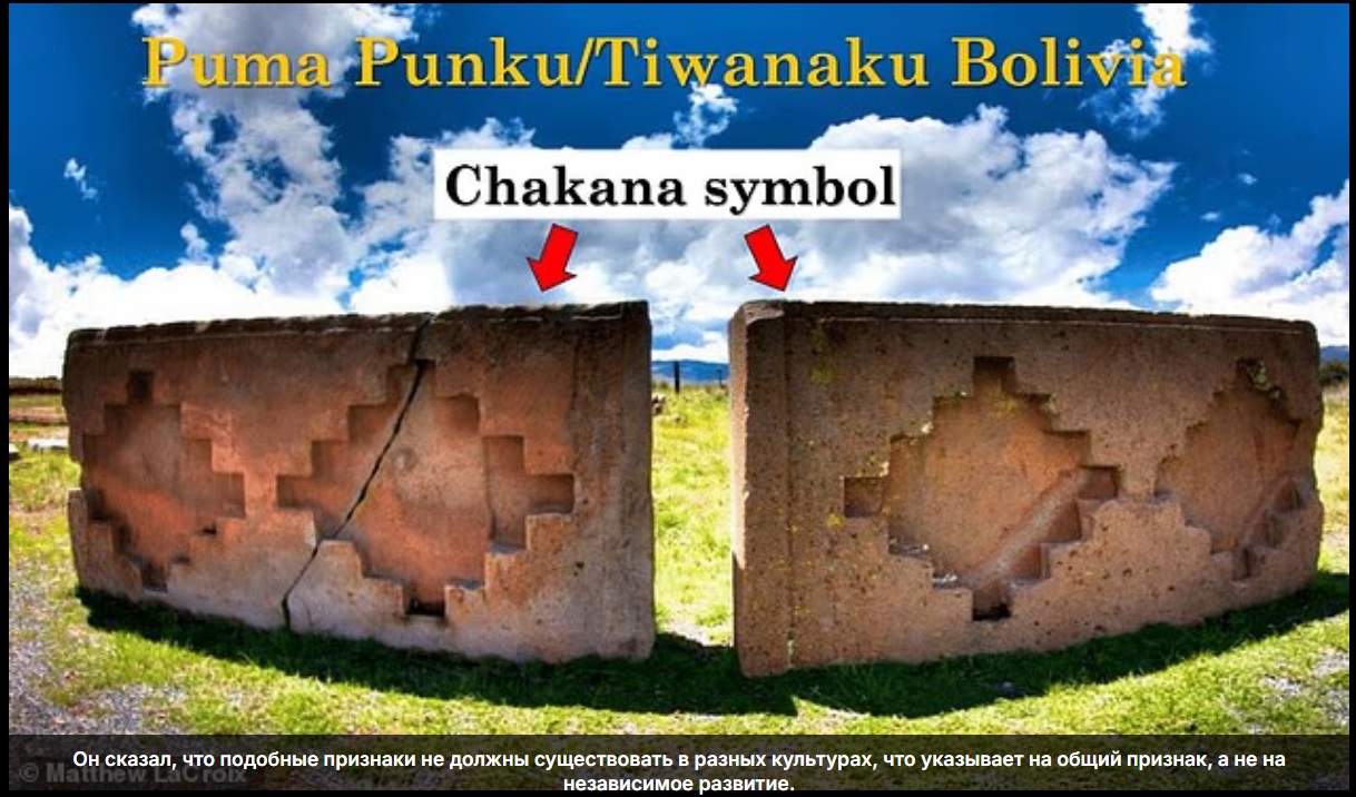 Параллели простираются за пределы Египта. Лакруа указывает на сходство планировки храма Акопана в Тиуанаку (Боливия) с символическими схемами, найденными на камнях в Турции. Более того, лидарное сканирование Пума-Пунку, другого знаменитого мегалитического комплекса в том же регионе, выявило, по его словам, гигантскую Т-образную конструкцию, что ещё больше укрепляет идею о едином архитектурном шаблоне.