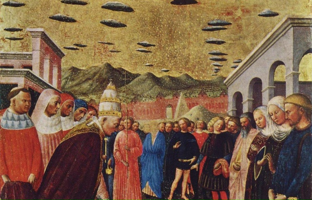 «Мы даже видели нескольких таких безумных глупцов, которые, веря в реальность станных вещей, привели на собрание людей четверых закованных в цепи — трёх мужчин и одну женщину, утверждая, что они упали с этих кораблей. Они держали их в оковах несколько дней, а затем привели ко мне, сопровождаемые толпой, чтобы побить их камнями, как уже приговорённых. Однако после долгого обсуждения истина наконец восторжествовала, и те, кто выставил этих людей на всеобщее обозрение, были посрамлены».