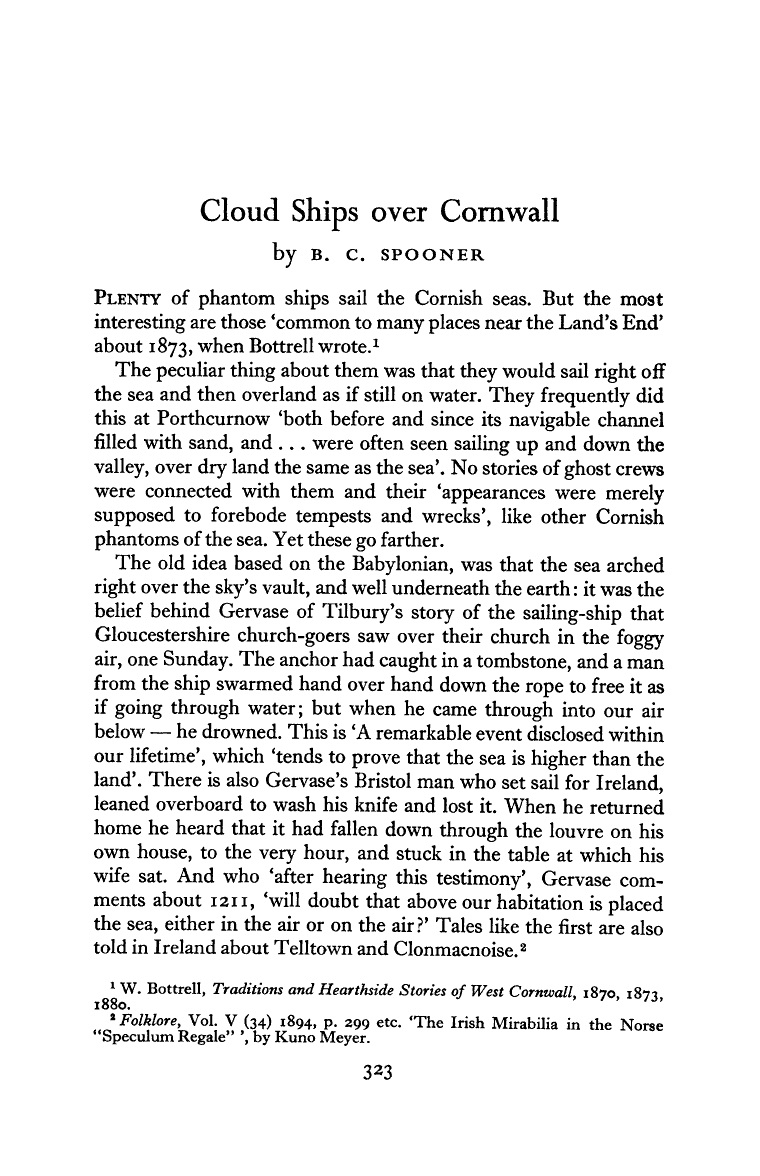 749 год (Анналы Ольстера): Монахи в крупном духовном центре Клонмакнойс сообщают, что «корабли (naues) с их командами были видны в воздухе» над монастырем.