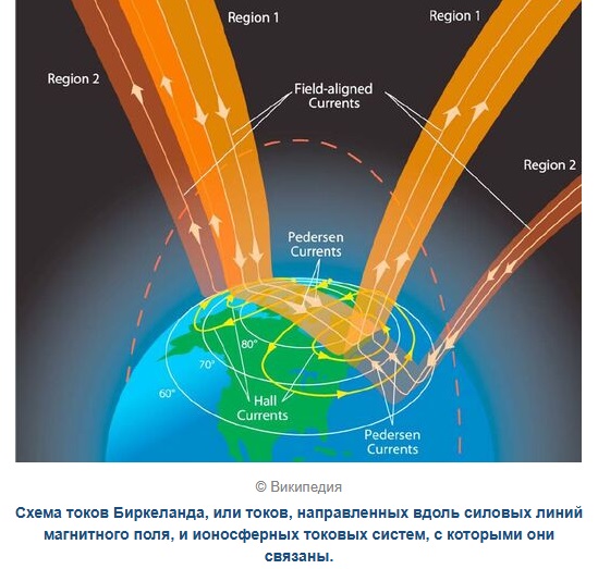 Представьте, что основной ток Биркеланда, питающий наш регион, на самом деле состоит из множества серий меньших токов Биркеланда, так что каждый из них, по мере движения вниз, становится все меньше и меньше. В каждом из них ток разделяется как двойная спираль.