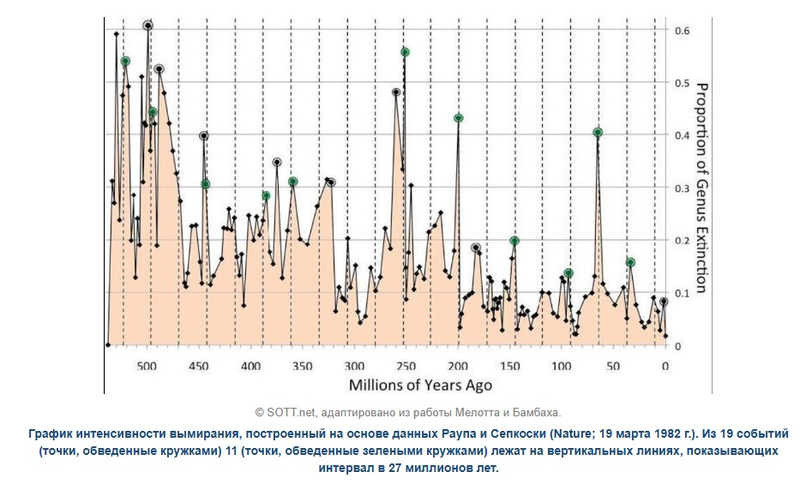 Как предполагается в мейнстримной науке, период обращения Коричневой звезды близок к 26 или 27 миллионам лет, совпадая с событиями вымирания, точные сроки которых не высечены в камне, поскольку методы датировки сомнительны. Это связано с ненадежностью радиоуглеродного датирования, которое не учитывает нарушение радиологического датирования и других методов из-за электромагнитных всплесков, магнитных аберраций, вызванных древними катаклизмами, и более 2000 ядерных испытаний, проведенных с 1945 года.