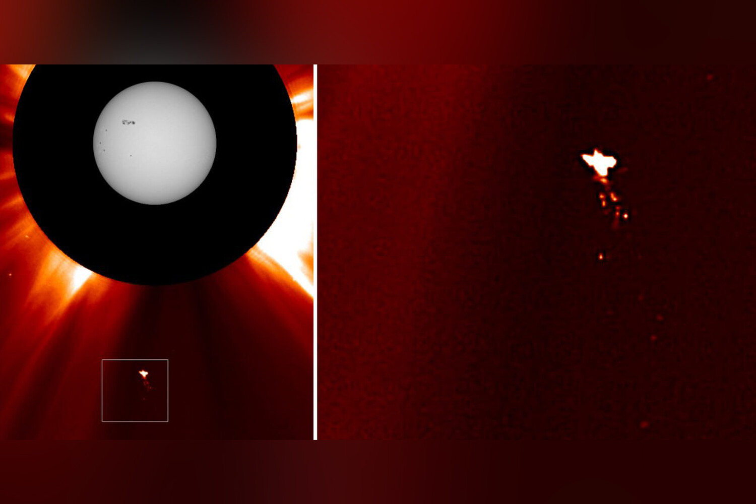 В мае 2025 года над Солнцем астрономы также зафиксировали с помощью одного из телескопов LASCO объект, похожий на птицу. Тогда сообщалось, что загадочный оптический объект превосходит по размерам планету Земля более чем в 10 раз.