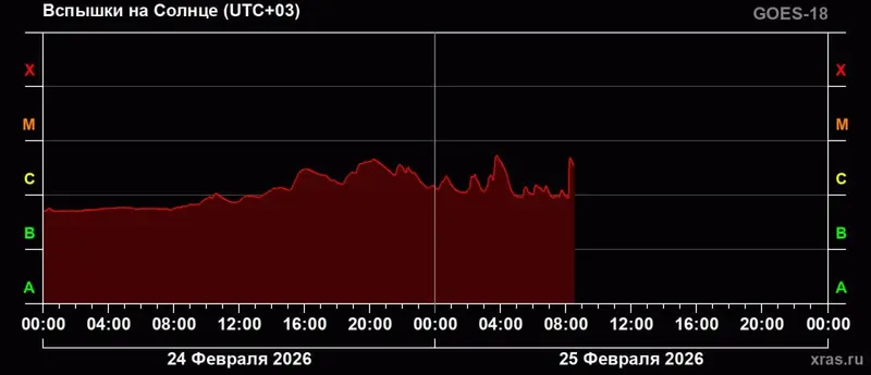 График солнечной активности за последние суткиИсточник: Лаборатория солнечной активности ИКИ и ИСЗФ