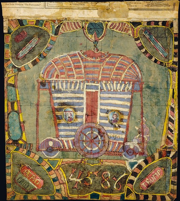 Именно это произошло с наследием Чарльза Делльшау, прусского иммигранта, поселившегося в Америке в 1850 году и умершего в 1923-м. Этот художник оставил после себя десятки рисунков фантастических летательных аппаратов, которые он называл «эросами». На первый взгляд — обычные для своего времени грезы о будущем, смесь дирижаблей, воздушных шаров и примитивных самолетов. Но при ближайшем рассмотрении на многих рисунках отчетливо читается слово — TRUMP.