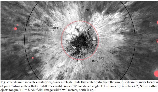Вокруг кратера виден яркий ореол выброшенного материала — камней и пыли, разлетевшихся при ударе. Это «одеяло» выбросов простирается на сотни метров от края. Более того, следы воздействия зафиксированы на расстоянии до 120 километров от эпицентра. Иными словами, даже находясь далеко от места прямого попадания, космический объект может быть поражён разлетающимися осколками.