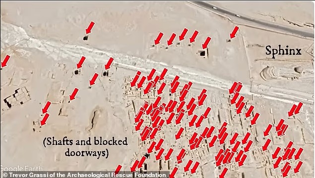 Независимый исследователь Тревор Грасси, посвятивший плато Гиза почти два десятилетия, опубликовал видеозапись, которая заставляет по-новому взглянуть на эту часть пустыни. Камера идёт вдоль северного края загадочного холма, и взгляду открывается одно за другим квадратные отверстия, вырубленные в коренной породе. Одни — чуть больше метра в поперечнике. Другие — до двух с половиной метров шириной. «Бесконечные шахты повсюду, уходящие прямо вниз, все засыпаны песком», — комментирует Грасси по ходу съёмки.