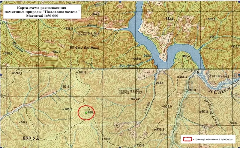 Карта-схема расположения памятника природы "Палласово железо". Предоставлена Игорем Гавриловым