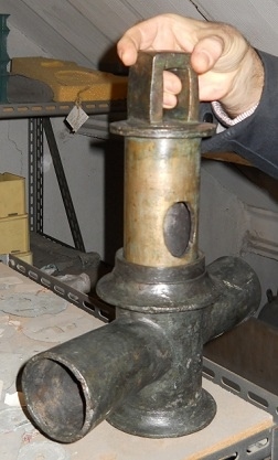Вставка плунжера клапана также была изготовлена из бронзы и представляла собой полую цилиндрическую вставку с овальным отверстием на каждой стороне цилиндра для прохода воды. Как и в случае с современными клапанами, вставка плунжера вращалась внутри корпуса клапана, чтобы либо контролировать поток, либо обеспечивать перекрытие.