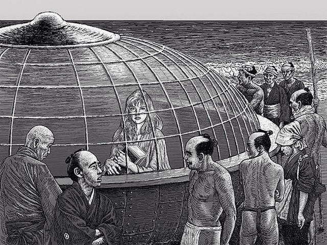 Она пришла из океана. Её корабль был сделан из материалов, которых японские рыбаки не видели. На ней была одежда, какой не было ни у одной известной культуры. Она улыбалась и пыталась говорить на языке, который никто не понял.