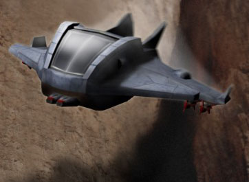Объект напоминал крылатый снаряд. Его тёмный корпус был темнее окружающего неба. Необычные крылья — широкие, как у бабочки или у гигантской летучей мыши — выдавались по бокам. Аппарат медленно двигался между зданиями, позволяя рассмотреть себя во всех деталях, а затем взял курс в сторону Луны.